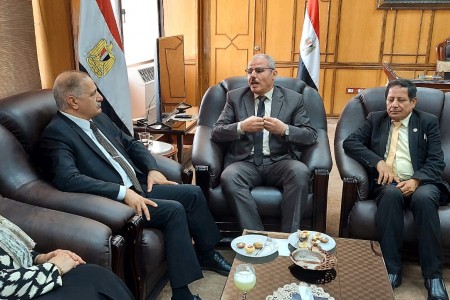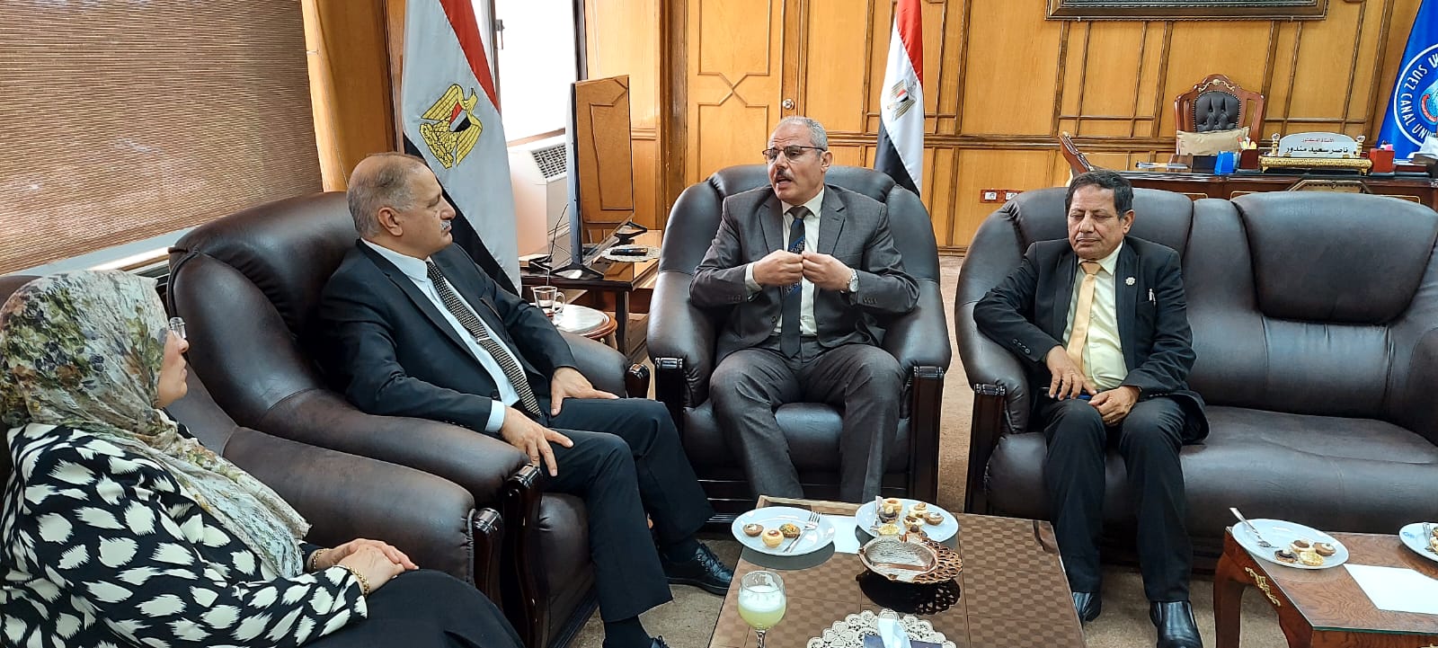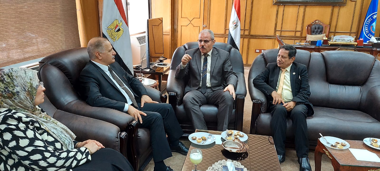 رئيس جامعة قناة السويس يستقبل السفير عماد طارق الجنابي والوفد المرافق له