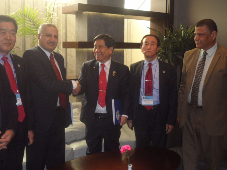 السفير عماد طارق الجنابي رئيس المجلس العربي الافريقي للتكامل والتنمية يعزز خطاه نحو الشرق لجلب التكنولوجيا المتقدمة من دول شرق اسيا الى مصر والمنطقة العربية والدول الافريقية بتوقيع اتفاقية جديدة للتعاون الاستراتيجي مع كوريا الجنوبية من خلال السيد كانج وونج رئيس المجلس الكوري المصري للتنمية بعد توقيع اتفاقية مماثلة مع رئيس غرفة تجارة مقاطعة جواندوج بجمهورية الصين الشعبية تمهيدا للمشاركة الاسيوية في المؤتمرالعربي الافريقي الرابع للاستثمار تحت شعار مصر خزائن الارض والذي سيعقد تحت رعاية الحكومة المصرية بتوجيه من رئاسة الجمهورية .