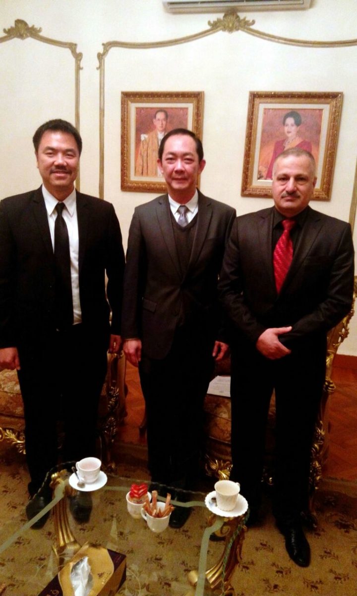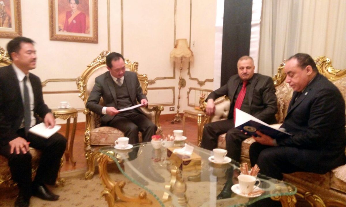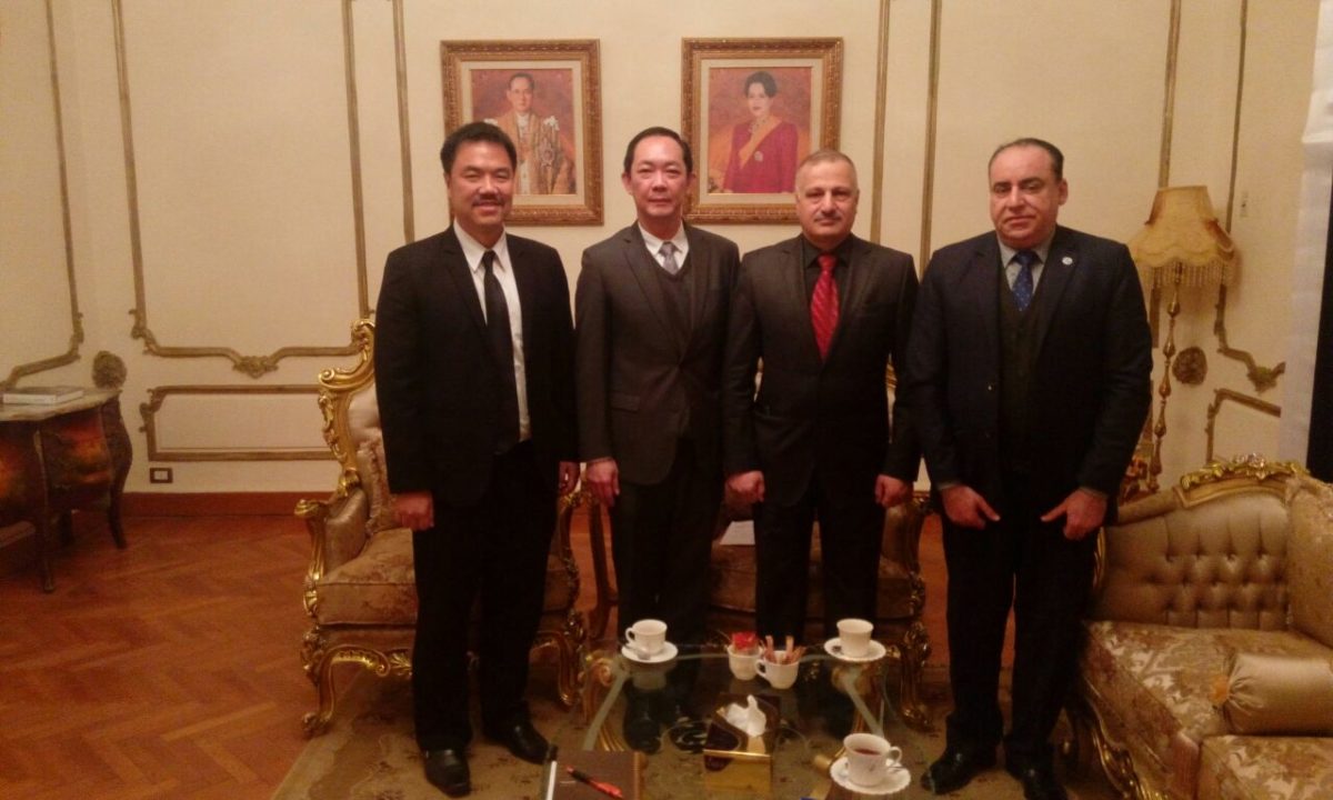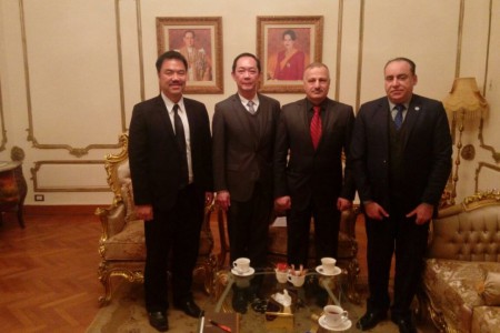 استكمالا لخطى المجلس العربي الافريقي للتكامل والتنمية لحشد اكبر تجمع اسيوي لجعله ظهيرا قويا لتعزيز ودعم الاقتصادي المصري فقد قام السفير عماد طارق الجنابي اليوم بلقاء القنصل التايلندي شاوادول نيباثانونت والمحلق التجاري القنصل ثالارنثا بمقر سفارة المملكة التايلندية بالدقي وقد ساد الحوار الودي تفهما من الطرفين بضرورة مشاركة المملكة التايلندية في مجالات التبادل التجاري والسياحي والعلمي بين البلدين .