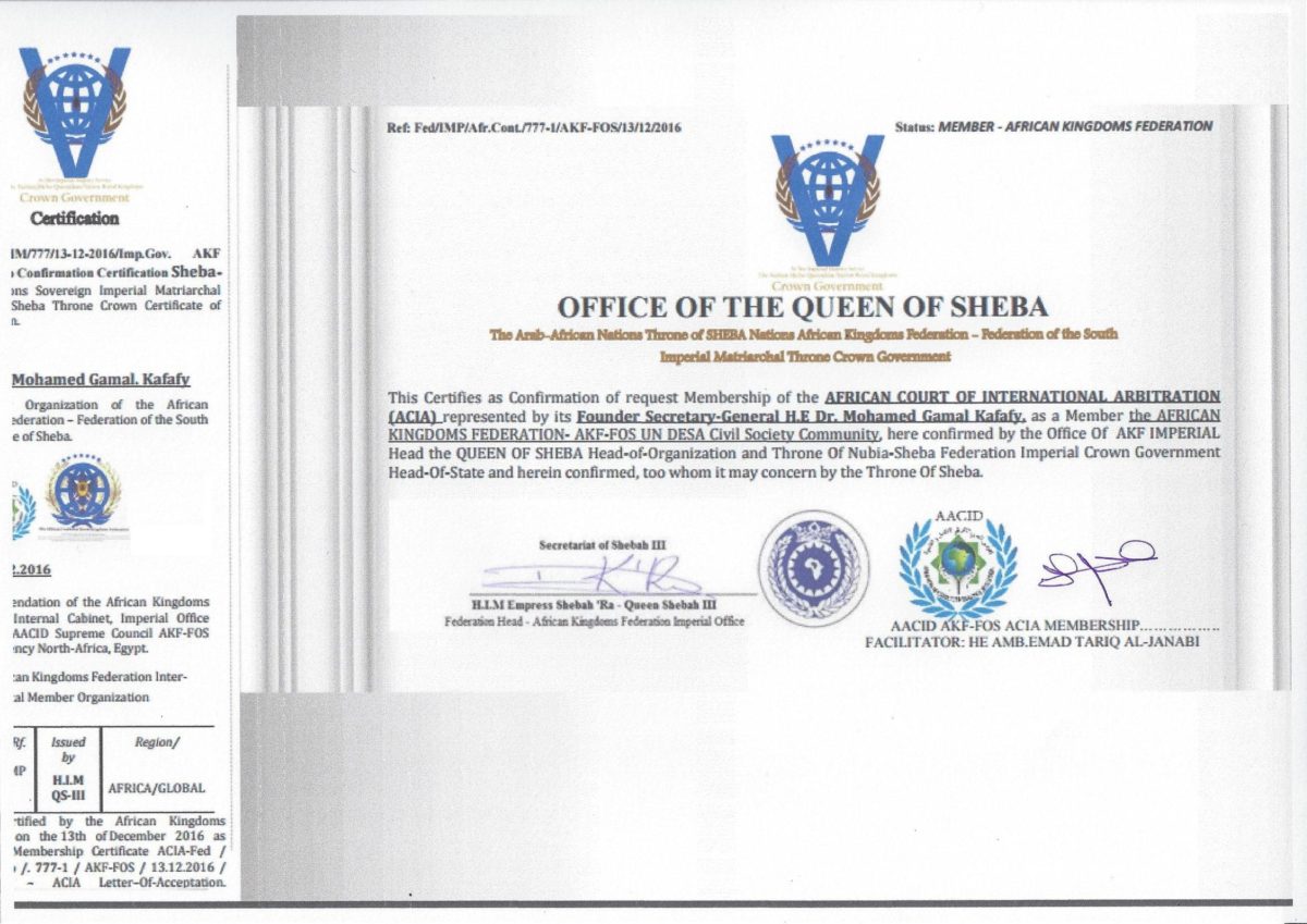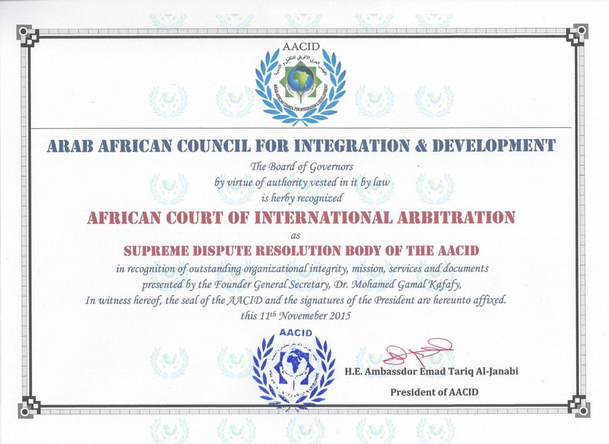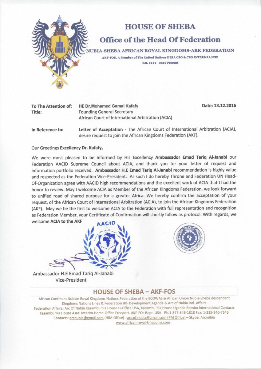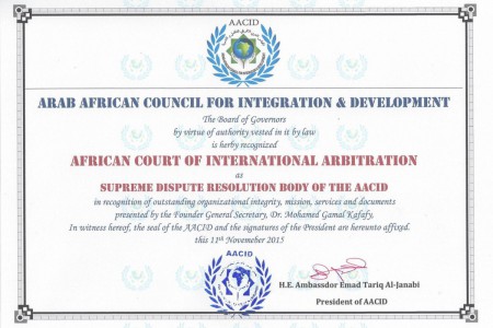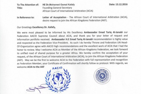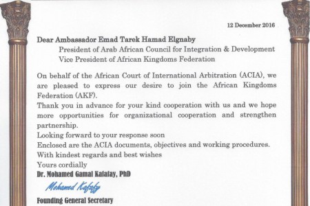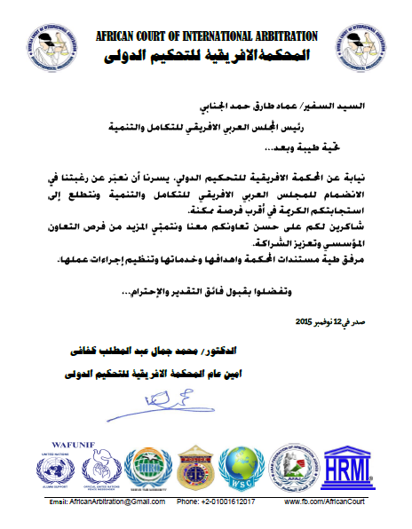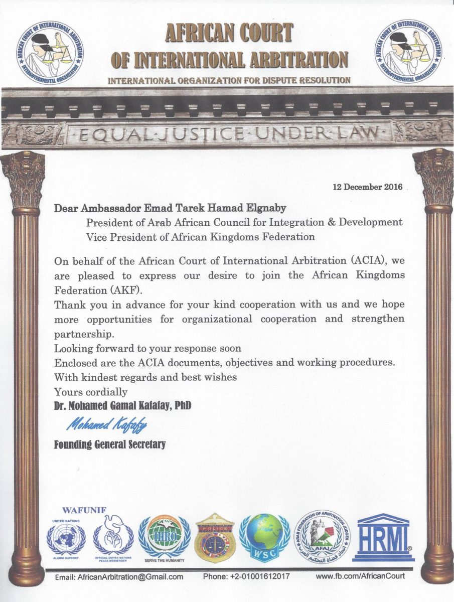 “المحكمة الافريقية للتحكيم الدولي” المسجل في الامم المتحدة ينضم الى المجلس العربي الافريقي للتكامل والتنمية واتحاد الممالك الافريقية .