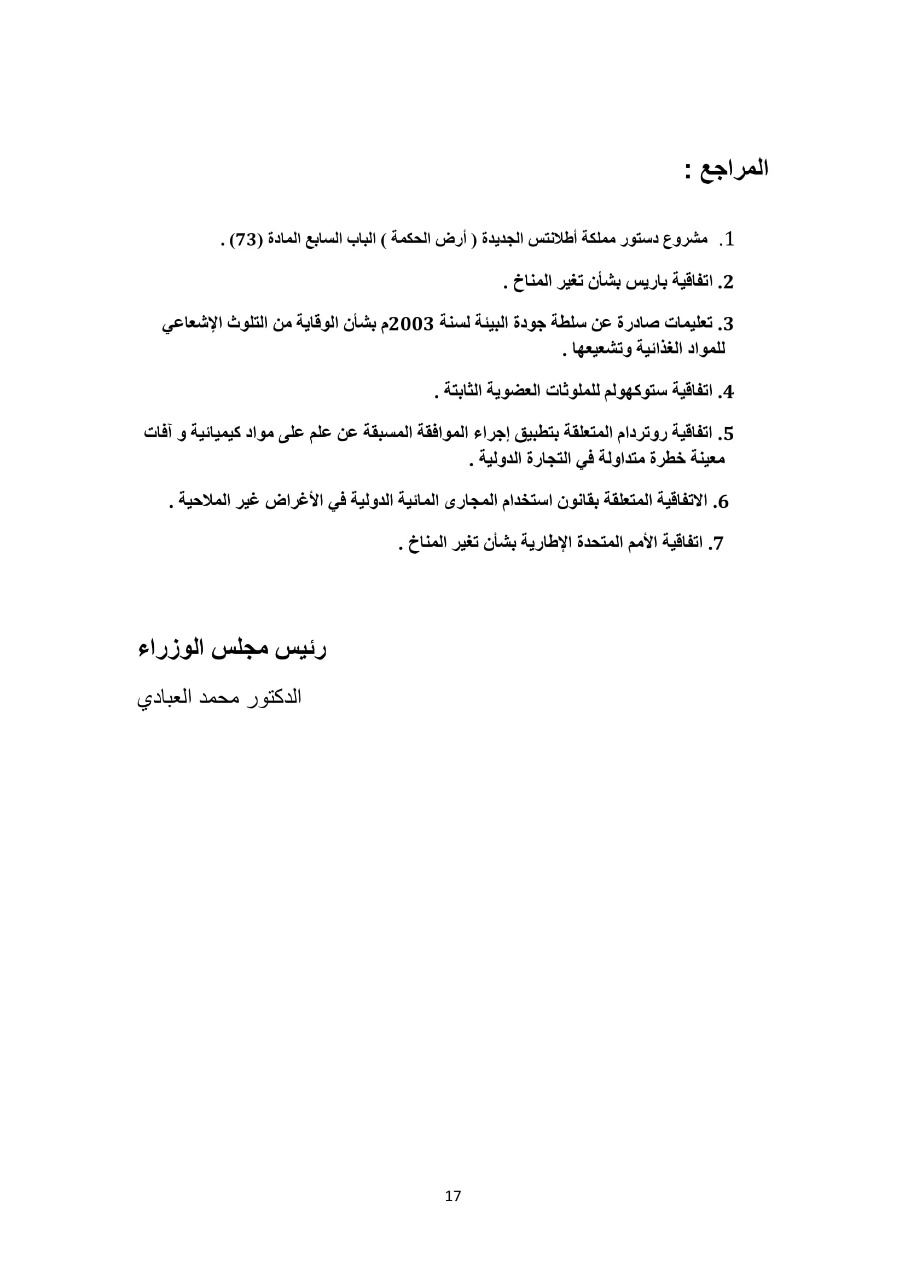 قانون البيئة الصادر عن رئيس وزراء مملكة اطلانتس الدكتور محمد العبادي